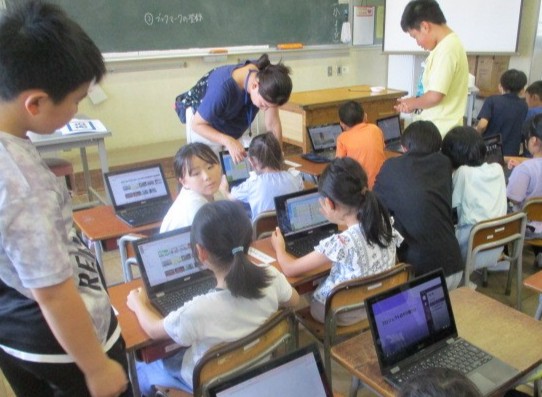 6年生のお手伝いで、1年生が一人1台端末でとやまげんキッズのアンケートなどの入力をしていました。子供たちにとって一人1台端末は、ノートや鉛筆などと同じ文房具です。調べるだけでなく、スライドなどでまとめ表現する、友達と情報を共有する、共同作業をするなどを場所を選ばず、瞬時にできるのが特徴です。もうすぐ始まる夏休みにも一人1台端末のよさを生かして、積極的に学んで欲しいと思います。