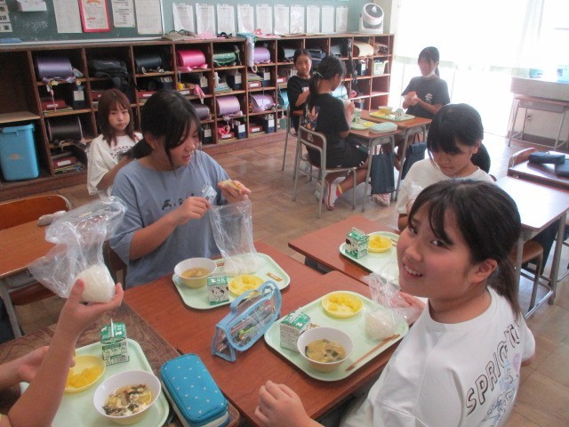 まるいのも、三角のも・・・、自分でつくったおにぎりはおいしい!