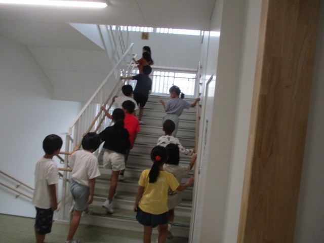 地震と地震で河川の堤防決壊、浸水の恐れがあるとの想定で避難訓練を行いました。緊急地震速報が入り、机の下にもぐるなどして頭を守り、揺れが収まるのを待ちました、さに浸水の恐れが出てきたので校舎の3回以上に避難するという訓練でした。お隣の月岡幼稚園の園児たちも学校の3階に避難してきました。