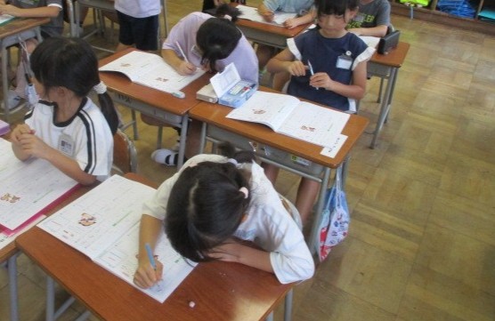 漢字の学習が始まりました。最初は「一」と「二」画の長さや位置に気を付けながら丁寧に書いていました。