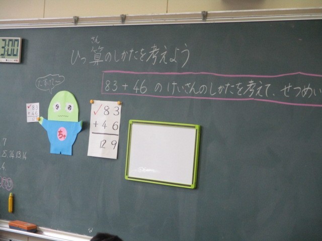 9月16日(火)今日の給食・月岡っ子 公開日 2025/09/16 更新日 2025/09/16 学校より 今日の給食ごはん、牛乳、厚焼き玉子、野菜ソテー、肉豆腐説明するって難しい2年生が算数科で、3桁+2桁のひっ算の学習をしていました。計算の仕方はわかるけれど、それを友達に分かりやすく説明するのは難しいことですが、説明してみるといろいろなことに気づき、ただ覚えるよりも思考が働き理解が深まります。言葉を書いたり図を使ったり、いろいろと考えてていました。 +3 学校行事