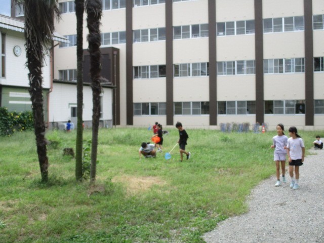 2年生が生活科の時間に夢中になって虫取りをしていました。中にはとても大きなトノサマバッタを捕まえた子もいました。捕まえた虫たちをどう育てていくのか、そこがこれからの学習です。