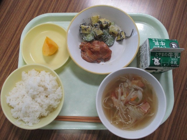 10月15日(水)今日の給食・月岡っ子 公開日 2025/10/15 更新日 2025/10/15 学校より 今日の給食ごはん、牛乳、照り焼きチキン、さつまいもとひじきのサラダ、ビーフンスープ、柿さつまいも、柿と、今日も秋を感じさせるメニューです。体育館から声や音楽が聞こえますいよいよ18日(土)が学習発表会です。16日’(木)はリハーサルとして校内発表を行います。どの学年も追い込みに貼っています。 学校行事