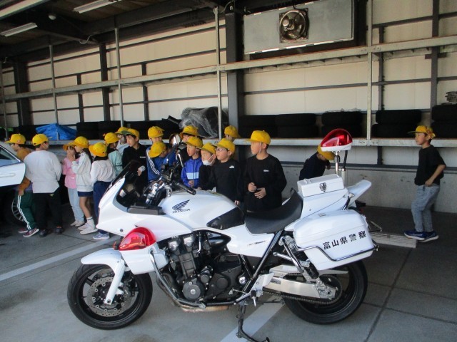3年生 校外学習 富山南警察署 公開日 2025/10/24 更新日 2025/10/24 第3学年 社会科の安全を守る警察の仕事の学習で、南警察署を見学しました。実際の手錠や警察手帳を見せてもらったりパトカー、白バイに乗せてもらったりしました。警察官の仕事の大変さや大切さを実感することができました。 +4 3年生