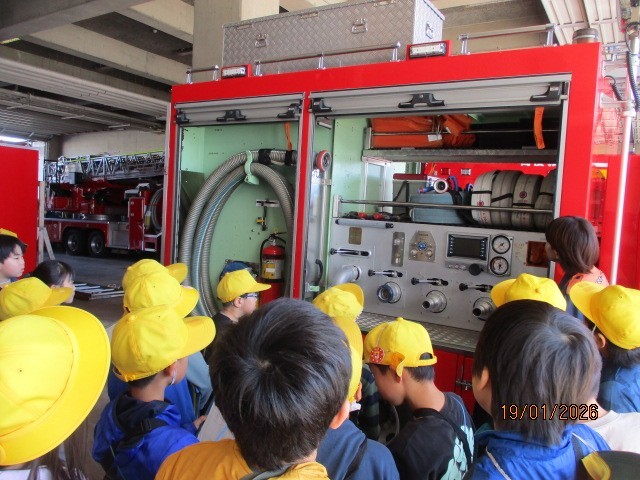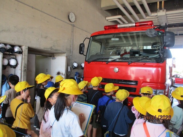 3年生 校外学習 富山市消防局・健康パーク 公開日 2025/10/24 更新日 2025/10/24 第3学年 富山市消防局では、通信指令室の見学や実際に119番通報する体験、ポンプ車などを見学しました。途中で、救急車の出動命令の放送が入り大変な仕事であることを学びました。健康パークでは、気持ちのよい秋晴れの中、班ごとにお弁当を食べました。 +5 3年生