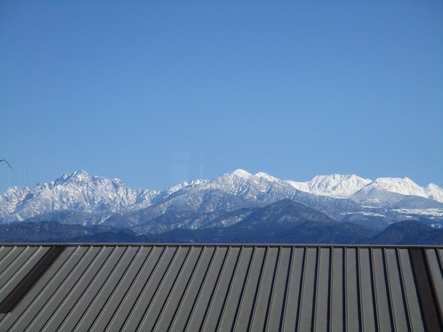 校舎3階から見える立山連峰です。すっかり雪景色になりました。昨日のニュースでは、立山室堂で1m以上の積雪があるそうです。写真右側の一番奥に見える台形の山が立山でです。室堂は山の陰になって見えません。左のとんがった山が剣岳です。雪があまり積もっていない様子でもその急峻さが分かります。