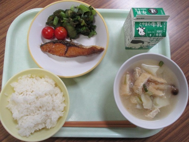 11月25日(火)今日の給食 公開日 2025/11/25 更新日 2025/11/25 学校より ごはん、牛乳、ふくらぎのかば焼き、とろろ昆布和え、フルティカトマト、富山野菜のたっぷり味噌汁今日は学校給食とやまの日ごはん、ふくらぎ、小松菜、大根、にんじん、ねぎ が富山産です。 学校行事