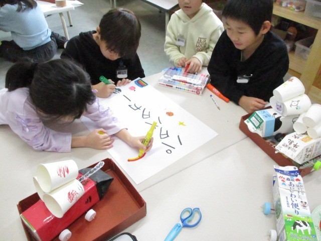 生活科では、おもちゃ作りをしています。自分たちが作ったおもちゃで1年生に遊んでもらおうと準備をしています。「おもちゃランド」の開催を楽しみにしている2年生です。