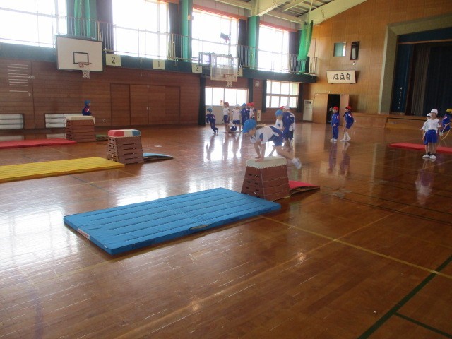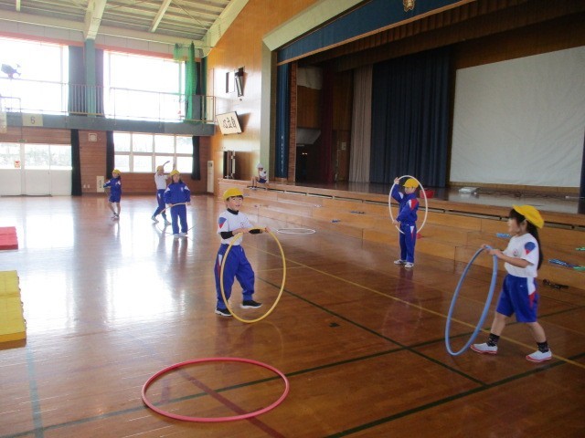 2年生が、跳び箱、フラフープ、縄跳び運動に取り組んでいました。どれも、手、足、体をうまく協調させて行う運動です。跳び箱では、自分の目当てに向けて果敢に挑戦する2年生です。