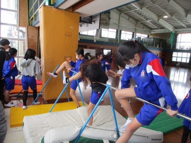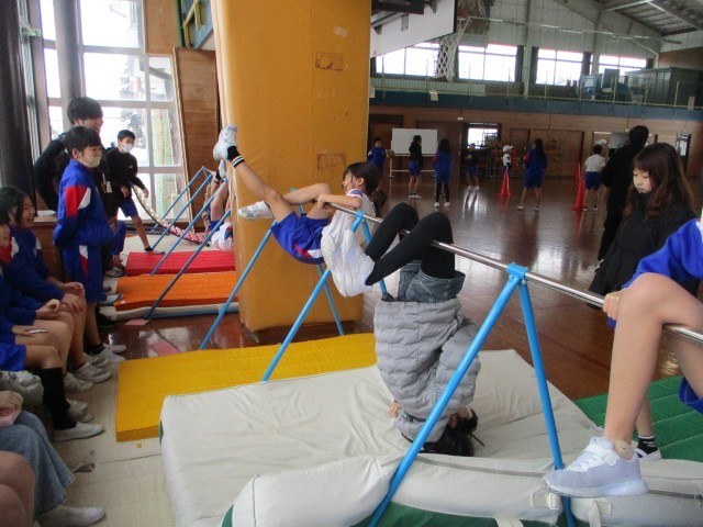 5年生の体育科は、鉄棒運動とバスケットボールに取り組んでいました。鉄棒運動は、体のバランスと動きの連動が大切です。足掛けまわりに挑戦していました。掛けた足ではなく、振り足をうまく使うと回れるのですが、コツをつかむのは、難しいようです。また、バスケットボールは、ボールをうまく扱う技能(パスやドリブル、シュート)とコート全体を見て、見方や敵の位置を考えてオフェンスやディフェンスができるかという空間認識能力が問われます。まずはボールになれ、たのしく取り組んでいくことが大切です。