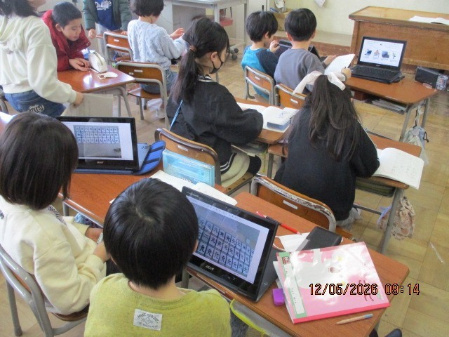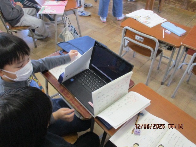 1年生が国語の時間にchromebookで学校内の画像をみながら、問題をつくる学習をしていました。1年生もすっかりchromebookを学習に使うことに慣れてきました。