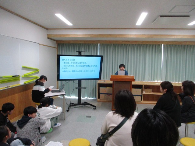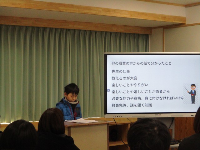 6年生(5~8枚目)国語科「今、私は、ぼくは」と題して、総合的な学習の時間に学んだことを中心に、将来の夢やなりたい職業についてプレゼンテーションを行っていました。自分の考えたことを筋道を立ててわかりやすく伝える力はとても大切です。