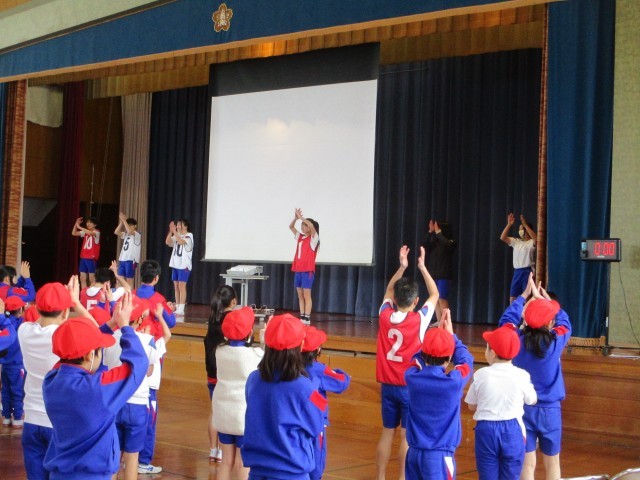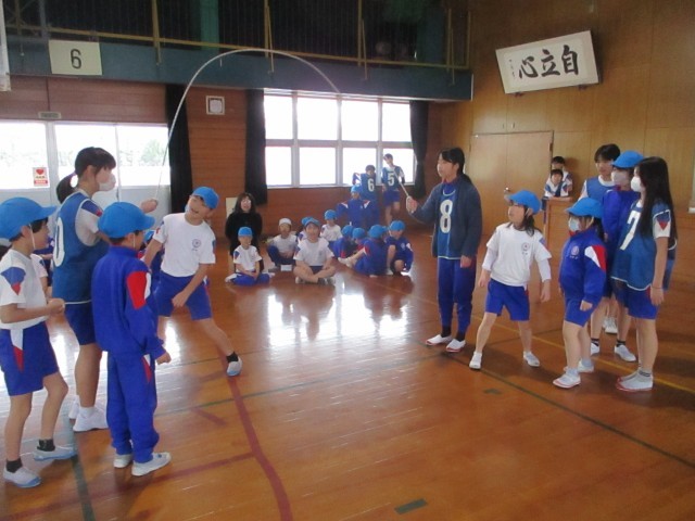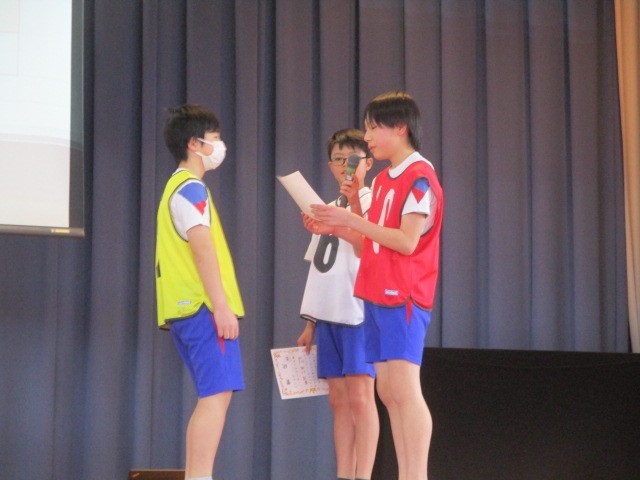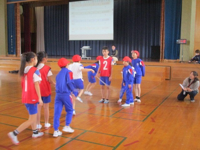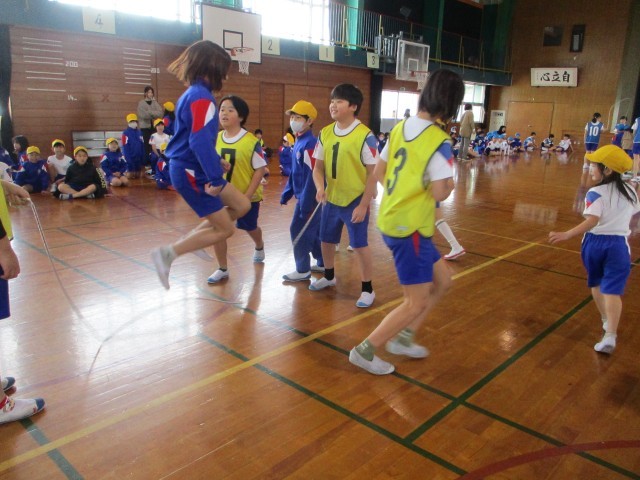 ロング四つ葉タイムに「縄跳び8の字跳び大会」を行いました。縦割り班で跳び、それぞれの団の合計回数で競い合いました。低学年にやさしく声をかける高学年や、必死でタイミングを合わせようとする低学年や中学年、そして、みんなが跳びやすいように縄を回す子供、どの姿からも縦割り班のまとまりを感じました。