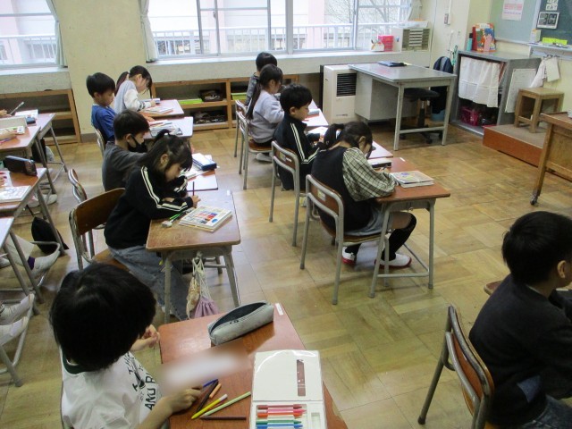 2年生は、掲示用の遺文の名前カードをつくっていいました。1年生で習った漢字で名前を書くことにチャレンジしていました。
