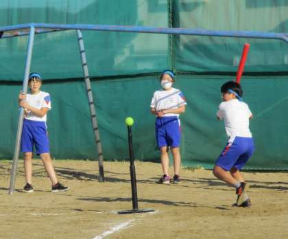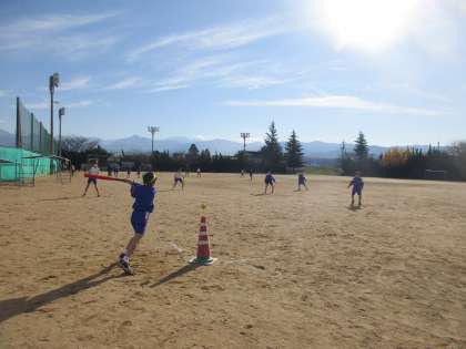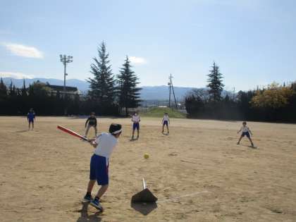 6年生「体育科−ティーボール!−」 公開日 2020/11/27 更新日 2020/11/27 第6学年 体育科の学習で「ティーボール」をしています。気持ちのよい天気の下、思い切り体を動かし、運動しています。