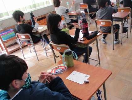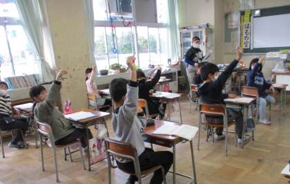 毎月1日を月岡小学校の「鉛筆の日」として、正しく鉛筆を持つことができているのかチェックしています。子供たちは、正しい持ち方のポイントを確認して、自分の持ち方を見直していました。子供自身が正しい持ち方を意識し、身に付けていけるよう支援していきたいと思います。