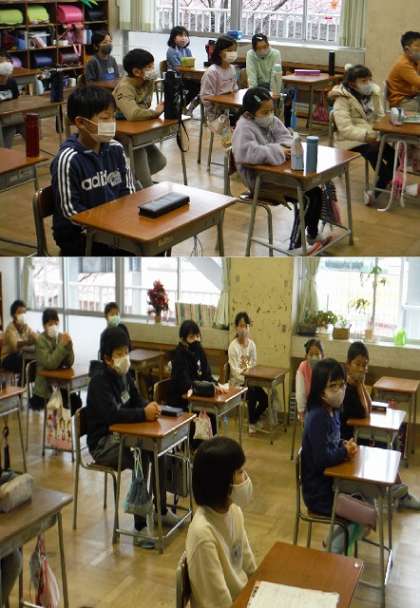 3年生 お話ミッケの会 公開日 2020/12/08 更新日 2020/12/08 第3学年 今年最後のお話の会でした。1組では十二支のお話、2組では野口英世さんの伝記を読み聞かせしていただきました。感染症に配慮しながらの読み聞かせではありますが、子供たちは真剣にお話を聴いていました。来年も楽しいお話をよろしくお願いします。