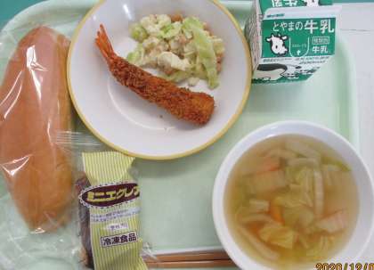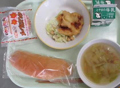 12月9日のセレクト給食は、「メープルマフィン」と「エクレア」、「豚肉のフリッター」と「えびフライ」のどちらか食べたいものを事前に選びました。子供たちは「おいしい。」と言いながら、自分の選んだものを食べ、笑顔になっていました。
