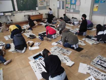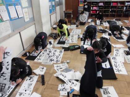 書き初め練習を行いました。一字一字気持ちを込めて丁寧に書いている姿が印象的でした。