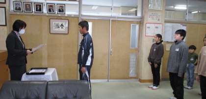 作品応募等で、優秀な成績を収めた子供たちへの受賞伝達を行いました。受賞伝達式は、校長室で行い、撮影したものを各教室で視聴しました。受賞した月岡っ子のがんばりに、全校児童は温かい拍手をおくっていました。
