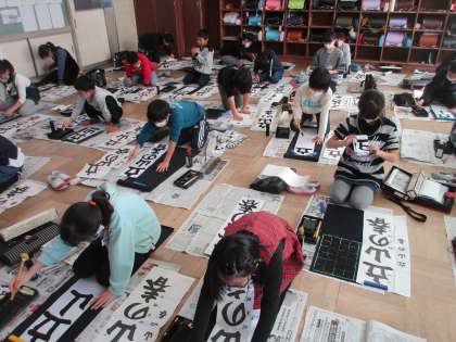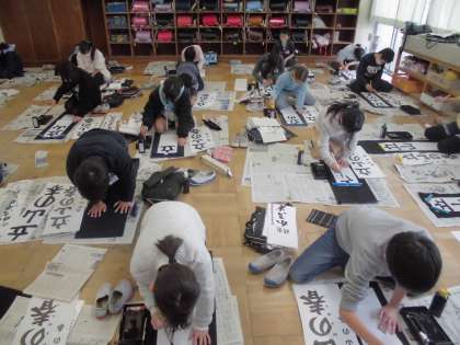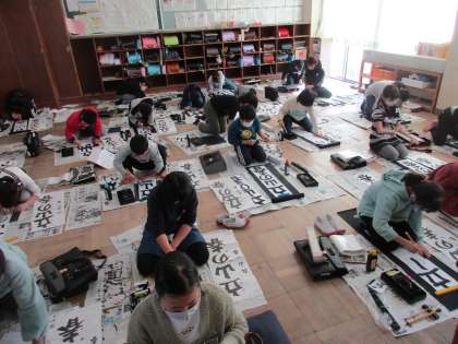 4年生 書き初め練習 公開日 2020/12/23 更新日 2020/12/23 第4学年 書き初めの練習を行いました。4年生が書くのは、「立山の春」です。お手本をよく見て、ポイントを確認しながら丁寧に書きました。冬休み中も、書き初めの練習をがんばりましょう。