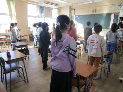 2学期の終業式を迎えました。各教室では、校内放送で校長先生が話されることを、子供たちがしっかりと聴いていました。終業式の後は、がんばったことや心に残ったことについて話し合い、2学期を振り返っていました。