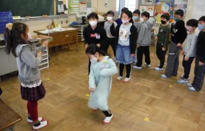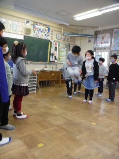 朝の体力つくりでは、校内なわとび大会に向けて、長縄跳びの練習に取り組み始めました。今日はクラスで練習を行い、1分間で30回程度と、ほとんど連続で跳ぶことができませんでした。跳び終わってからも、縄の回し方や跳ぶときの姿勢など、みんなで作戦を立てました。体育の時間やのびのびタイムなどを利用して、みんなでレベルアップしていきましょう!
