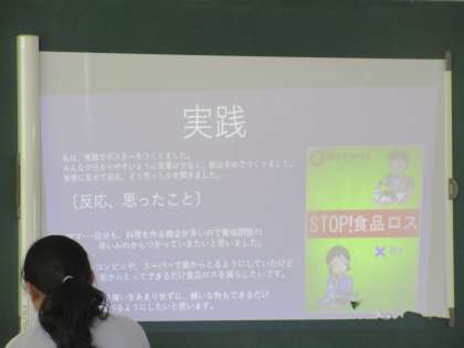5年生 食品ロスについて発表しました 公開日 2021/01/22 更新日 2021/01/22 第5学年 総合的な学習の時間に取り組んできた「STOP the 食品ロス」について発表しました。一人一人が調べた内容や実践してきた内容をパソコンを使って丁寧に伝えました。友達の発表を聞いて、みんな「食品ロス」を減らしていこうという思いを高めました。