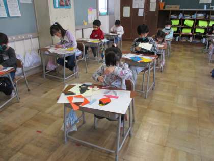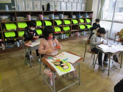 1年生 版画 公開日 2021/01/27 更新日 2021/01/27 第1学年 カラータック版画に挑戦しました。テーマは「自分の好きな昔話」です。 下絵をもとに、カラーシールを切り抜く活動をしました。完成が楽しみです。