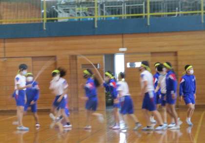 6年生 「長縄跳びの練習!」 公開日 2021/01/29 更新日 2021/01/29 第6学年 体育科の時間に長縄跳びをしています。今日は、来週の長縄跳び大会に向けて、団ごとに練習をしました。みんなでタイミングを合わせながら、一生懸命練習に取り組むことができました。