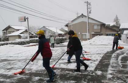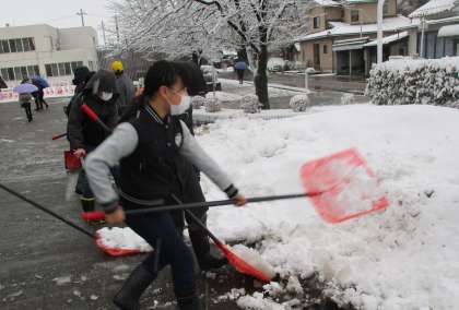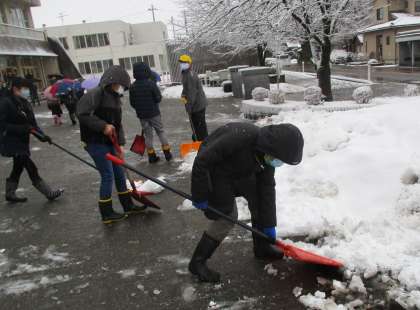 6年生 「雪の日の仕事!」 公開日 2021/01/29 更新日 2021/01/29 第6学年 今朝は、雪が降ったため、6年生で除雪を行いました。みんなでやると、あっという間に玄関前がきれいになりました。