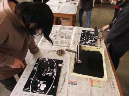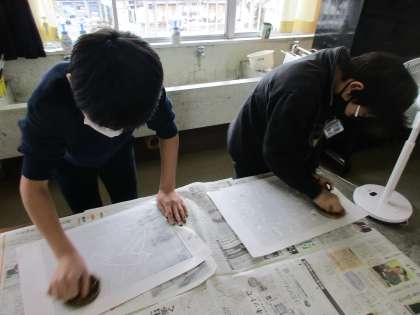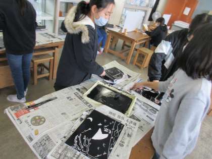 5年生 版画を刷りました 公開日 2021/02/10 更新日 2021/02/10 第5学年 図画工作科の学習で「ぼく・わたしの花鳥風月」を版画で表現しています。仕上がった作品は、3月2日〜4日の間、教室前に掲示します。是非、ご覧ください。