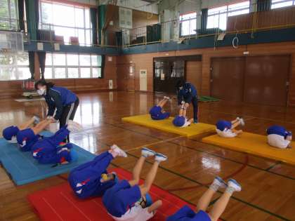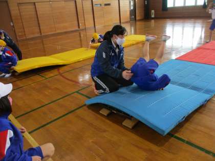 富山市体育協会スポーツ指導員の方々にマット運動を指導していただきました。