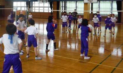 3年生 ソフトバレーボールで楽しもう! 公開日 2021/02/26 更新日 2021/02/26 第3学年 体育科の時間には、ネット型ゲームのソフトバレーボールに取り組んでいます。始めたころは、ボールを上げることができなくて、ゲームにはなりませんでした。練習をしていくうちに、個々の技能が上達していき、今では、スパイクやブロックもきまるようになりました。チームごとに練習方法や作戦を立てて、チーム全体が上達するようにがんばっています。