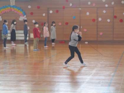 2年生 卒業を祝う集会 公開日 2021/03/03 更新日 2021/03/03 第2学年 卒業を祝う集会で、2年生は「太陽のサンバ」という曲を踊りながら歌いました。この曲は、6年生が2年生の時に、区域連合音楽会で歌った曲です。 6年生のあたたかい手拍子に包まれながら、楽しく踊って歌うことができました。6年生に喜んでもらえて、子供たちはとてもうれしそうでした。