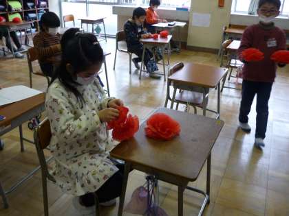 役割分担をしながら、丁寧にてきぱきとお花作りに取り組みました。