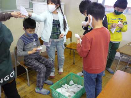 自分たちの花が6年生の教室の飾りに使われると知り、とてもうれしそうな子供たちでした。