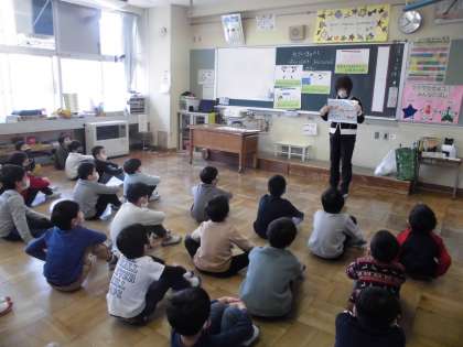 養護教諭から「6さいきゅうし」について教えてもらいました。1年間かけて大きくなるため、生え始めは虫歯になりやすい「6さいきゅうし」。どのように磨いたらよいかを、歯の模型を使いながら考えました。