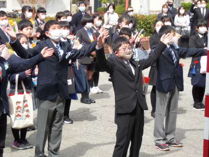 6年生「卒業式!−No.5−」 公開日 2021/03/19 更新日 2021/03/19 第6学年 歓送会の様子です。子供たちがエールを送り、教職員や保護者の方々が花道を作ってくださいました。子供たちは、晴れやかな表情で月岡小学校を巣立っていきました。