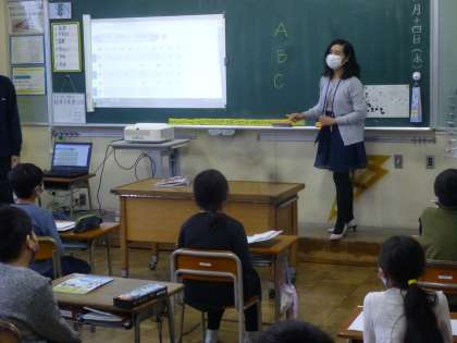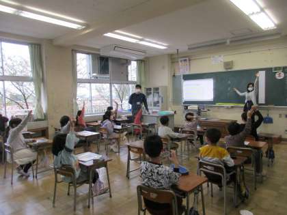 3年生 外国語活動 公開日 2021/04/14 更新日 2021/04/14 第3学年 今日、3年生は初めて外国語の授業を受けました。ALTの先生が出すクイズに答えたり、友達と英語で自己紹介をしあったりと、とても楽しんで活動する様子が見られました。