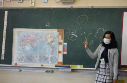 今年度の外国語活動がスタートしました。新しいALTの先生の自己紹介クイズに答えながら、これから始まる学習にわくわくしていました。先生の出身地には春や秋や冬がなく、年中夏だということを教えていただき、みんな驚いていました。今日は世界のいろいろな国のあいさつを知りながら、外国語でのあいさつに親しみました。