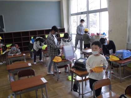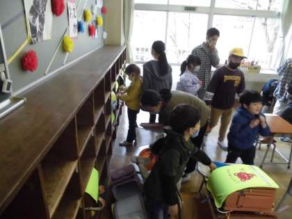 1年生 はじめてのことにチャレンジ 公開日 2021/04/16 更新日 2021/04/16 第1学年 入学して10日が経ちました。1年生として、初めてのことに一生懸命チャレンジしています。 まず、朝、学校に着いたら、ランドセルの中から教科書やノートを出し、後ろのロッカーにきちんと片付けます。6年生のお兄ちゃん、お姉ちゃんが優しく教えてくれています。