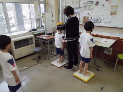 1年生 はじめてのことにチャレンジ4 公開日 2021/04/16 更新日 2021/04/16 第1学年 小学校で初めて、身体測定をしました。保健室で身長や体重を測定しました。視力測定も「右、上」と自分の言葉で言いました。ちょっとドキドキした子供たちでした。