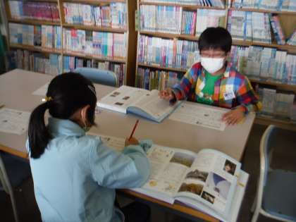 図書館司書の先生から、百科事典の使い方について学びました。百科事典を使うと、子供達にとっては聞いたことが無いような言葉でも、とても分かりやすく書かれていたことに驚いていました。ちなみに「ン」から始まる言葉で「ンゴマ」という言葉について、先生も初めて知って驚きました。これから、どんどん百科事典を活用していきましょう!