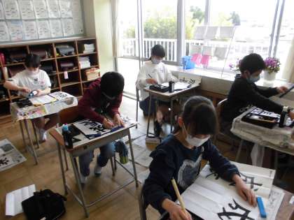 5年生 書写「成長」に挑戦! 公開日 2021/04/22 更新日 2021/04/22 第5学年 書写の学習の様子です。 「成長」という字を練習しました。筆順に気を付けながら、真剣に書く子供たちの姿が見られました。