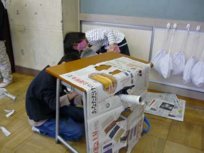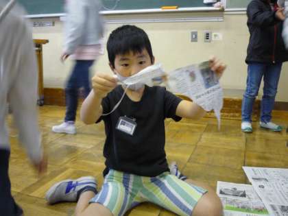 隠れ家を作ったり、丸めて望遠鏡を作ったりしていました。「まだやりたい!」と終わりの時間を惜しんでいた子供たちです。