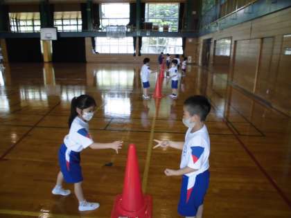 1年生 体育館で体育をしたよ! 公開日 2021/05/07 更新日 2021/05/07 第1学年 広い体育館で、体育の学習をしました。 まずは、しっかり準備体操をしました。 そして、色団も決まり、みんなで力を合わせて折り返しリレーをしました。じゃんけんを取り入れたリレーもしました。