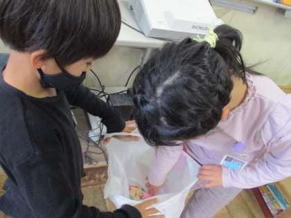 係の企画で、なぞなぞや、なにが入っているでしょうゲームをしました。