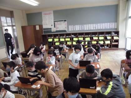 1年生 クロムブックでログインしたよ 公開日 2021/05/07 更新日 2021/05/07 第1学年 学校で、初めてパソコンをさわりました。 ログインをするのは、難しかったので、6年生が優しく教えてくれました。 「これからは、もっとパソコンを使って上手になりたい。」とやる気いっぱいでした。