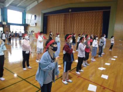 5年生 6年生と応援練習☆1 公開日 2021/05/17 更新日 2021/05/17 第5学年 運動会に向け、応援合戦の練習が始まりました。 6年生さんに教えてもらいながら、声を出したり、ふりつけを合わせたりしています。 どの団も気合い十分です!